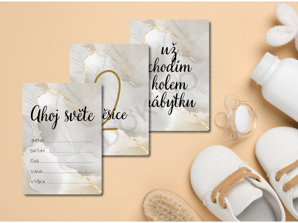 Milníkové kartičky jsou zábavný a jedinečný způsob, jak zachytit a oslavit všechny důležité milníky prvního roku vašeho miminka. Tyto krásně navržené karty vám pomohou zaznamenat všechny úžasné momenty, od prvního úsměvu a prvních krůčků až po nástup do školky a čtvrté narozeniny.