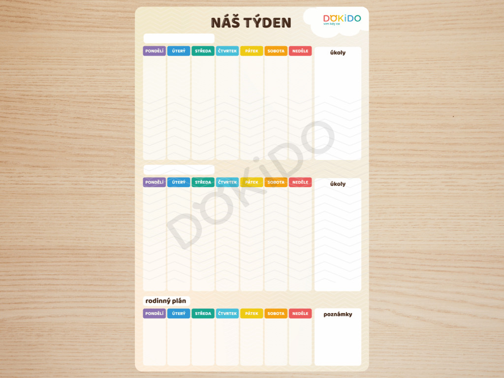 NÁŠ PLÁN – týdenní plánovací kalendář pro dvě děti + úkoly + rodinné plány je KALENDÁŘ VŠE V JEDNOM.