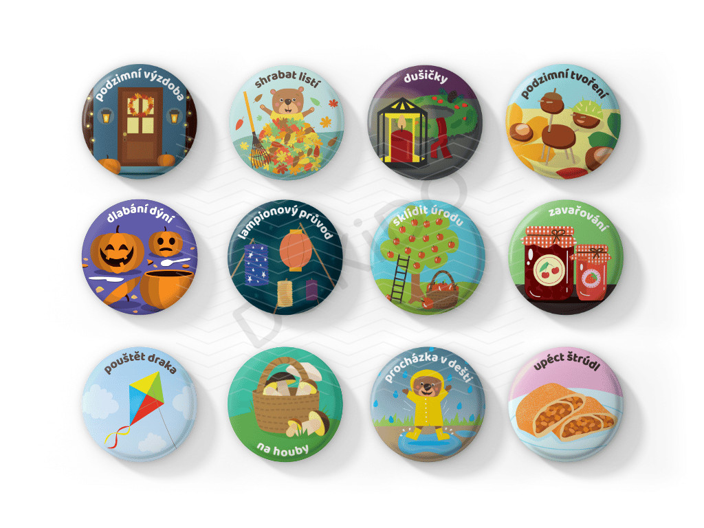 Podzim je jako stvořený pro společné zážitky — a s naší limitovanou sadou podzimních magnetek je můžete mít krásně přehledně v kalendáři. V sadě najdete ikonické aktivity, které k podzimu prostě patří: pouštění draka, dlabání dýní, sbírání hub, podzimní tvoření, lampionový průvod nebo voňavé pečení štrúdlu.