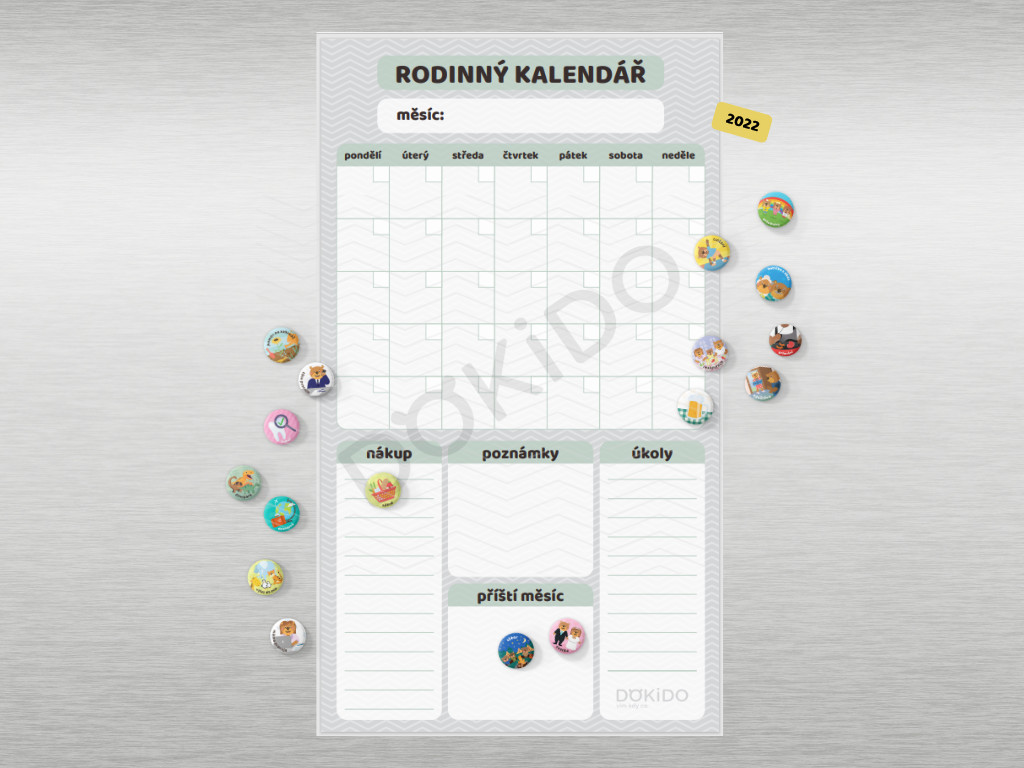 Vaše záznamy můžete přizpůsobit i barevnými popisovači, aby každý člen rodiny měl svou barvu. Unikátnost mu dodají také tématické magnetky s roztomilými iilustracemi, které pro vás ručně vyrábíme.