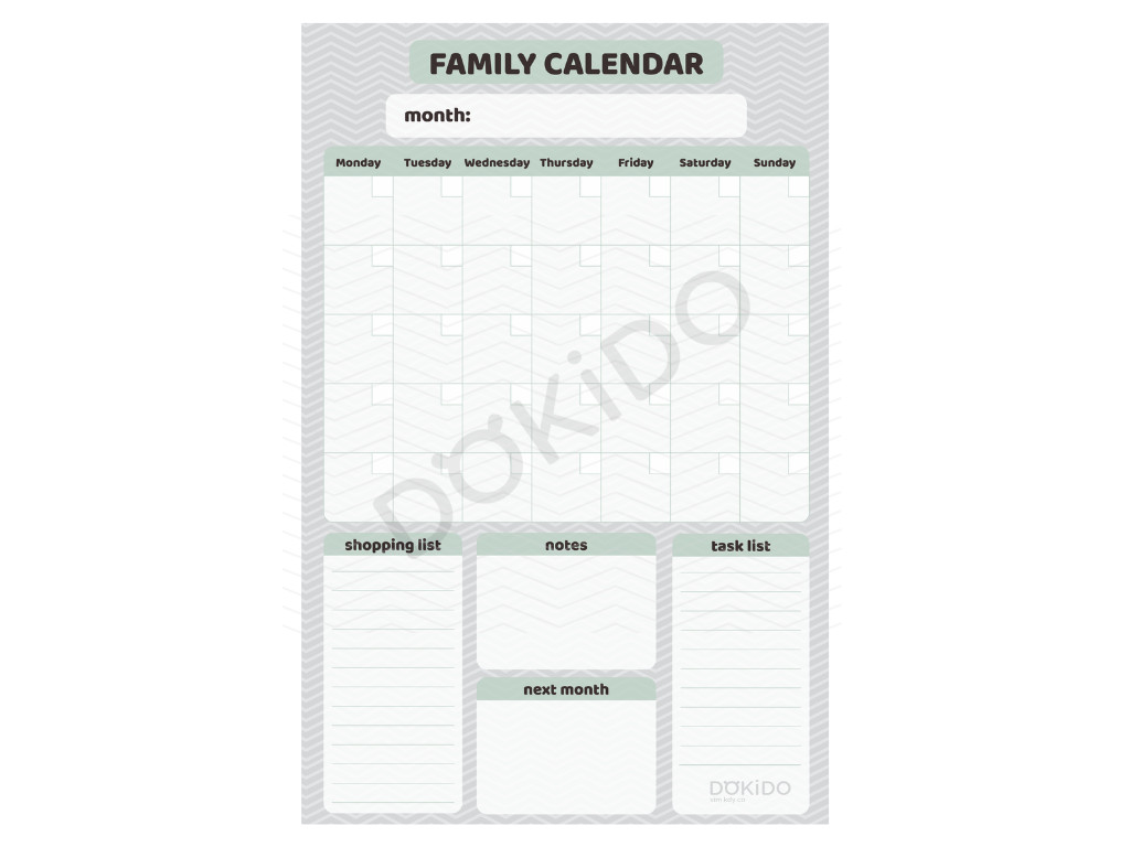 Jeden kalendář pro všechny členy vaší rodiny, společné plány na jednom místě a všem na očích. To je Rodinný kalendář. Začít můžete kdykoli během roku, protože kalendář je nedatovaný a každý měsíc si tak můžete zaznamenávat své společné plány, povinnosti i sny. Ať se jedná o rozvážení dětí na kroužky a jiné aktivity, ale také otázka, kdo a co by měl nakoupit, kam se pojedete o víkendu na výlet či zda se neblíží babiččiny narozeniny.